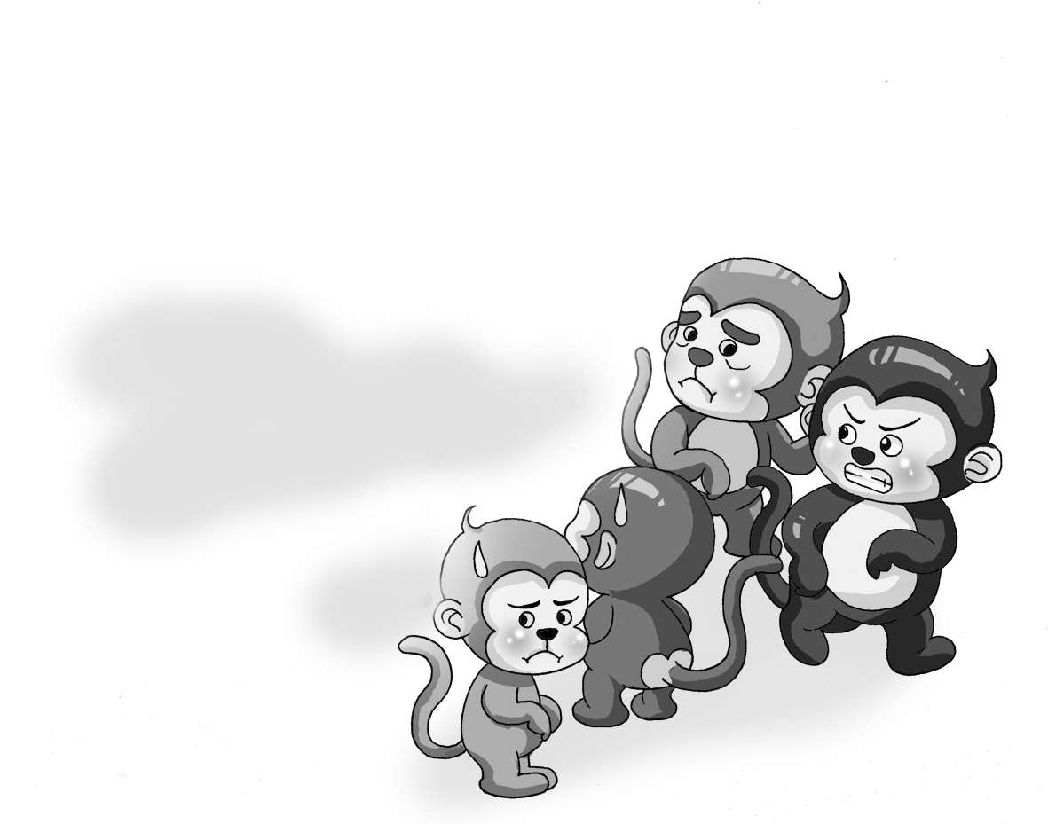 一群猴子。可不是一群没有出息的猴子,所以他们就要出门,相继爬上一个顶高的山头去旅行。那也不是一座平常的高山,而是一座伟大的秃头的山,又魏峨又开朗,可以望见下面的旷野、河流,和一切不是平地上所能看见的景致。但是,很不巧,他们刚爬上山顶,就遇见了大雷雨。那也不是普通的、吓吓胆小的人的大雷雨。墨黑的云从四面八方汹涌而来,马上使天地间昏黑了;电光不停地闪射,好像整个天空都已经烧了起来似的;雷声更凶猛得骇人,仿佛地球就在破裂一般。