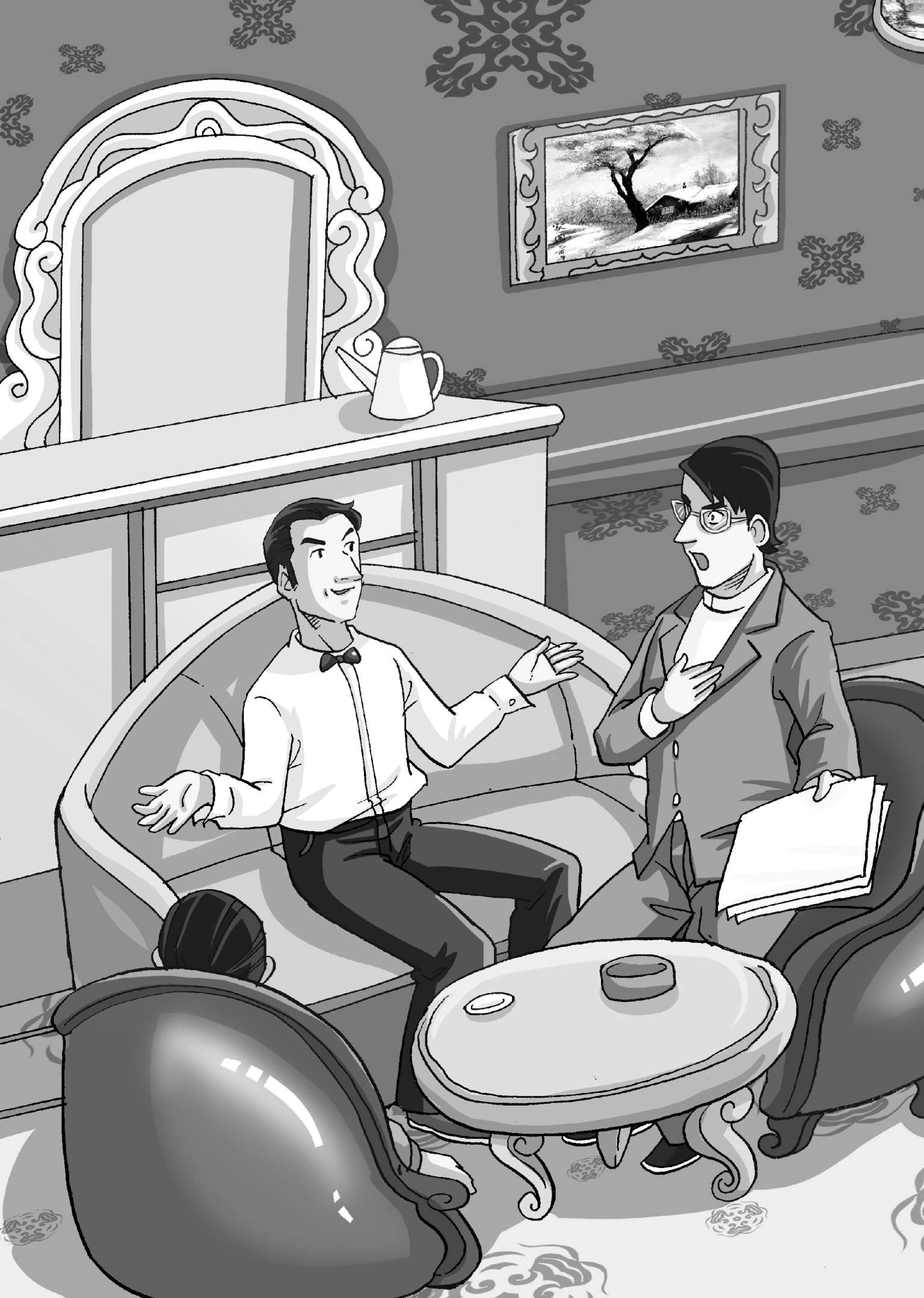 拗不过业务员的坚持,秘书硬着头皮,再进办公室。董事长火大了,将名片一撕两半,丢回给秘书。