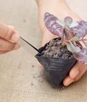 1.将镊子从育苗杯边插入,自下而上地将植物从育苗杯中推出。 |