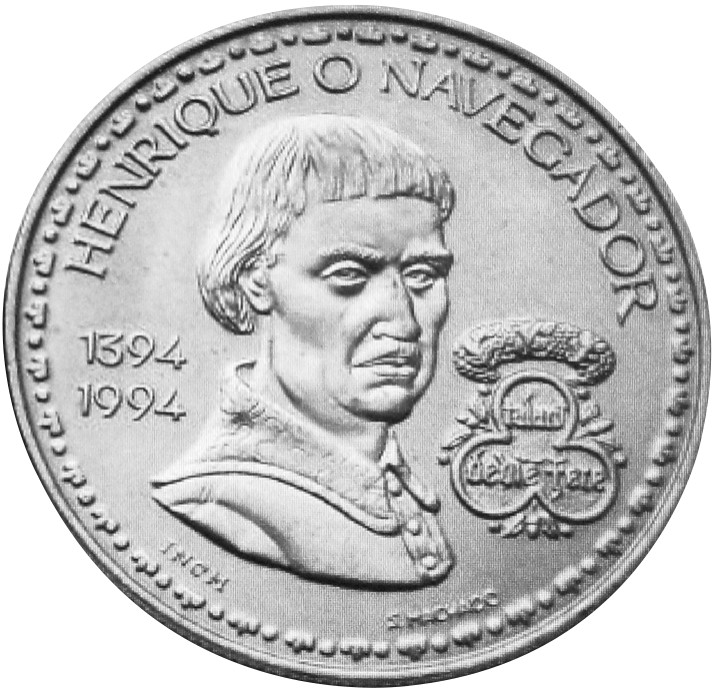 图144 1994年,葡萄牙发行的航海家亨利王子诞辰600周年纪念币。