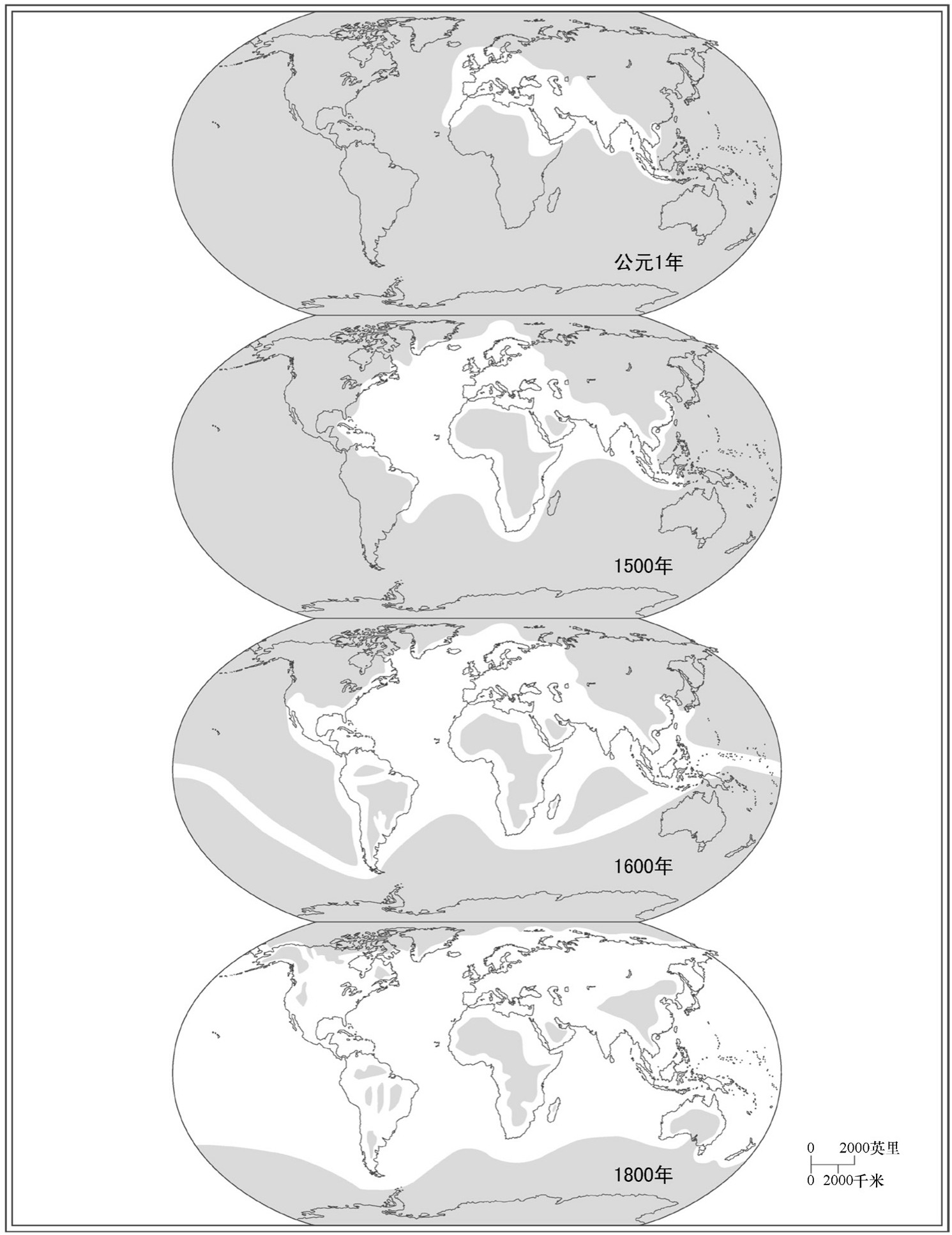 全面论述欧洲扩张的力作有:J. H. Parry,The Age of Reconnaissance :Discovery, Exploration and Settlement 1450-1650(New American Library,1963);European Reconnaissance :Selected Documents(Harper&Row,1968);G. V. Scammell,The World Encompassed :The First European Maritime Empires, c.800-1650(University of California, 1981)。从印度人的视角解释欧洲扩张的著作有:K. M. Panikkar,Asia and Western Dominance(Harper & Row,1954);K. N. Chaudhuri, Trade and Civilization in the Indian Ocean(Cambridge University,1985)。关于欧洲扩张带来的致命的生物影响,参阅A. W. Crosby,Ecological Imperialism :The Biological Expansion of Europe, 900-1900(Cambridge University,1986)。关于欧洲扩张的宗教因素,参阅C. R. Boxer, The Church Militant and Iberian Expansion 1440-1770(Johns Hopkins University,1978)。