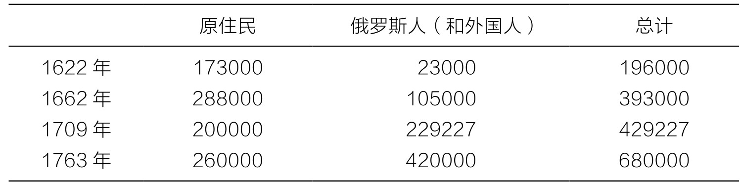 表1 1763年前西伯利亚的人口增长