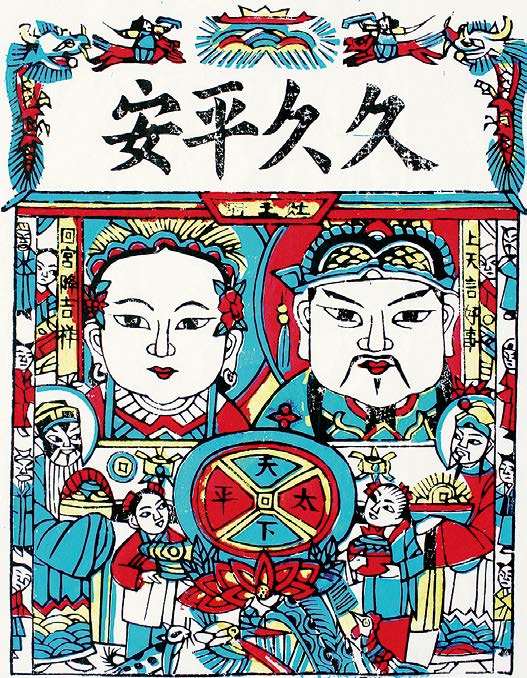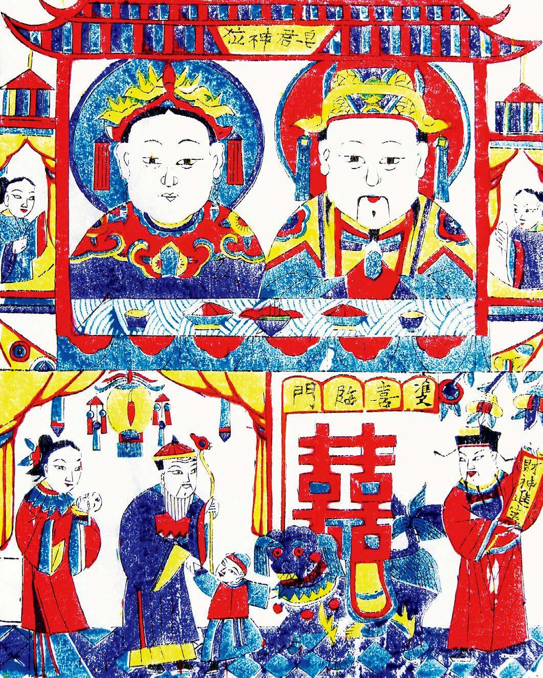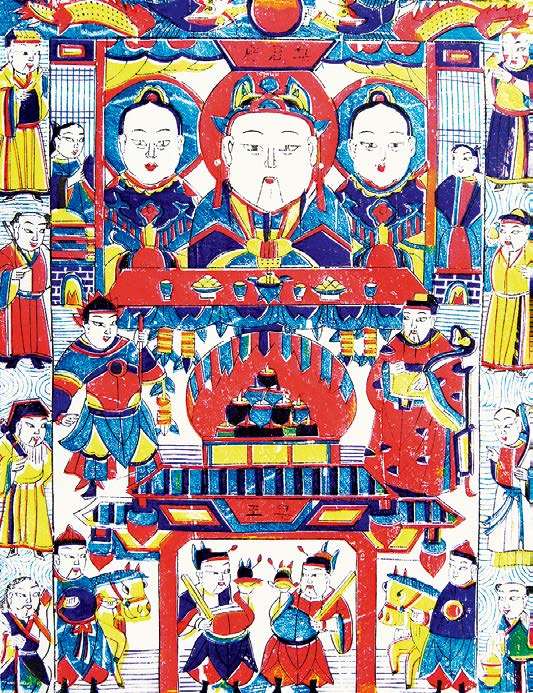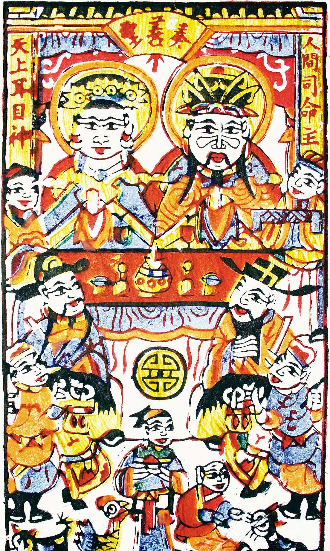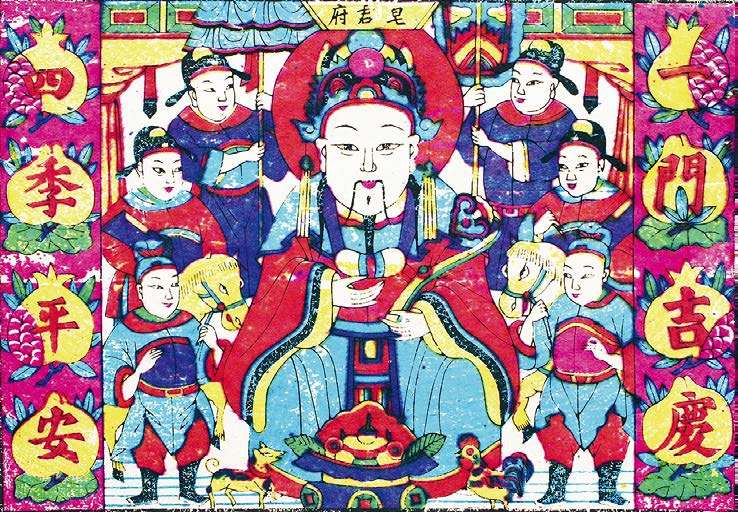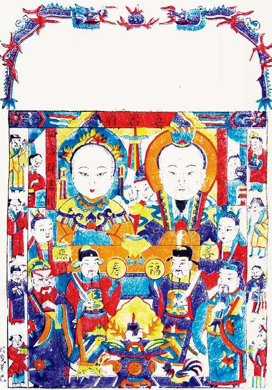 灶王爷是木版年画中表现最多的题材,也是印制量最大的年画,甚至在木版年画三大基地之一的杨家埠有一句话:“先有灶王爷,后有杨家埠。”因杨家埠就是以印灶王爷年画出名,每年腊月,家家户户印灶王爷年画,销往全国各地。
