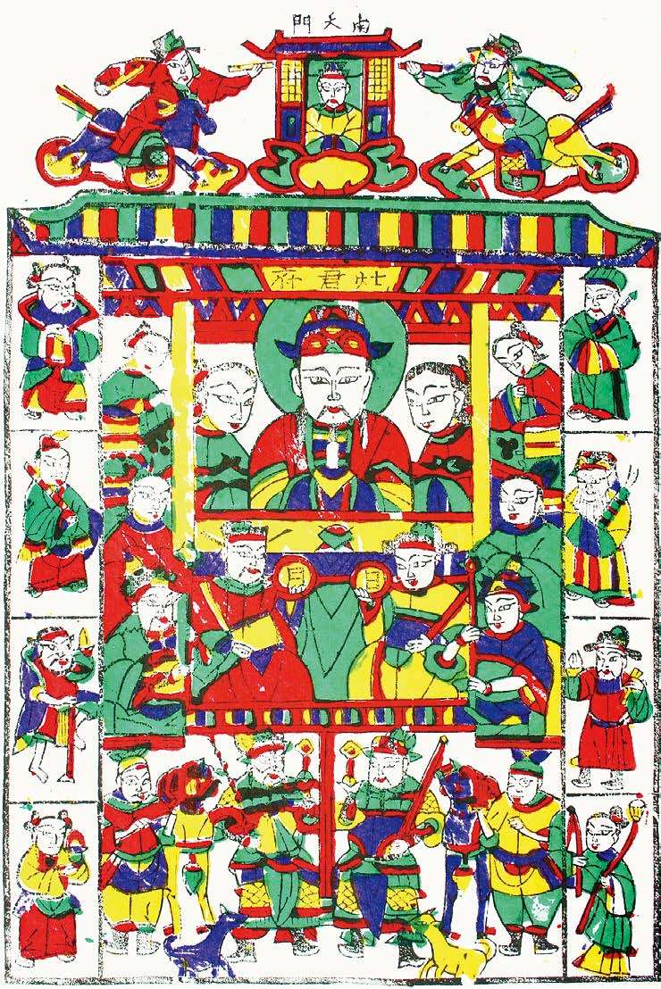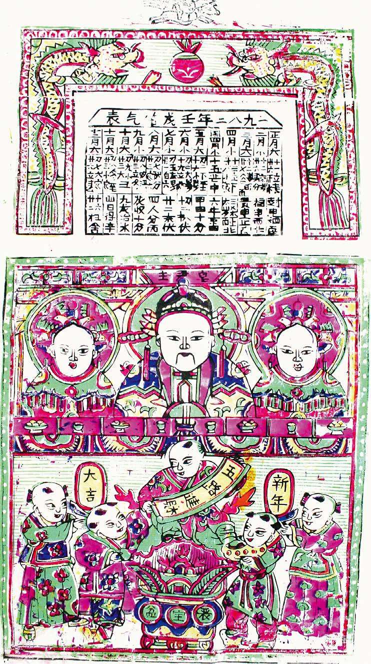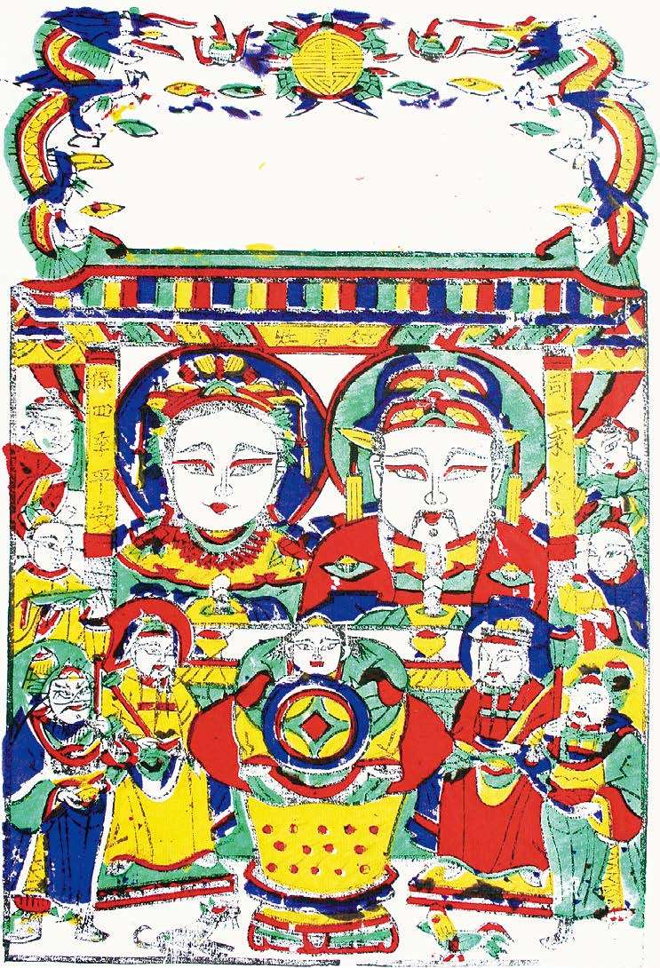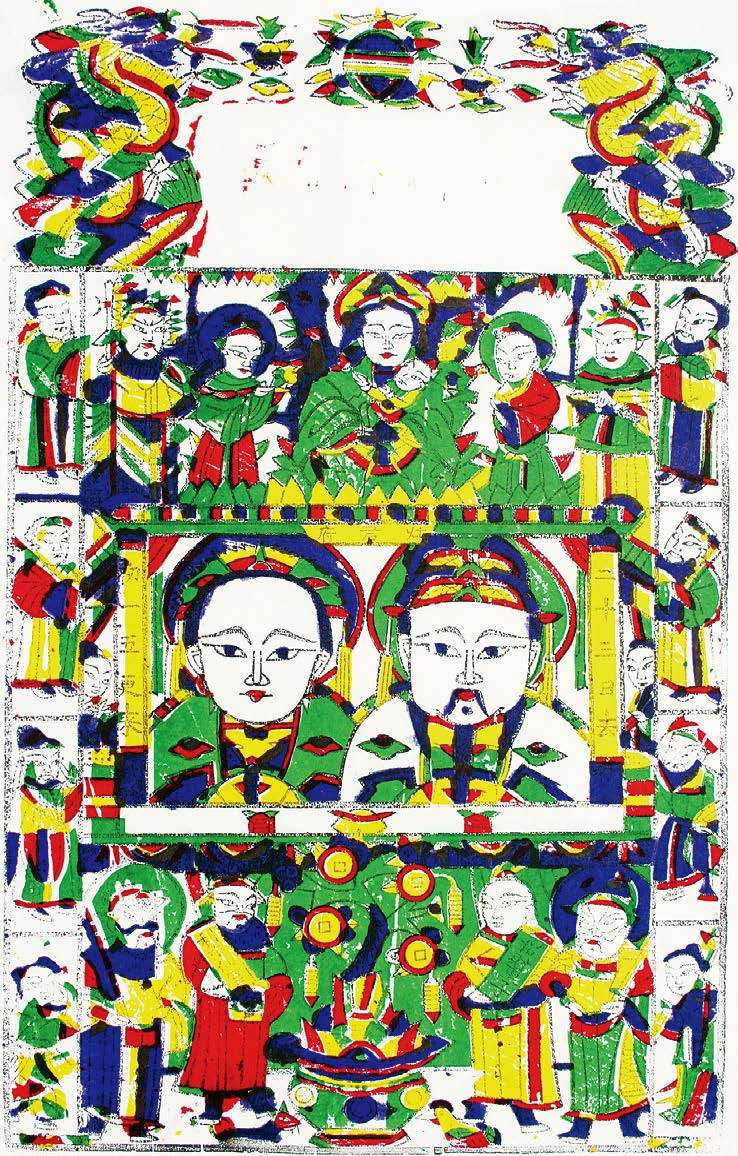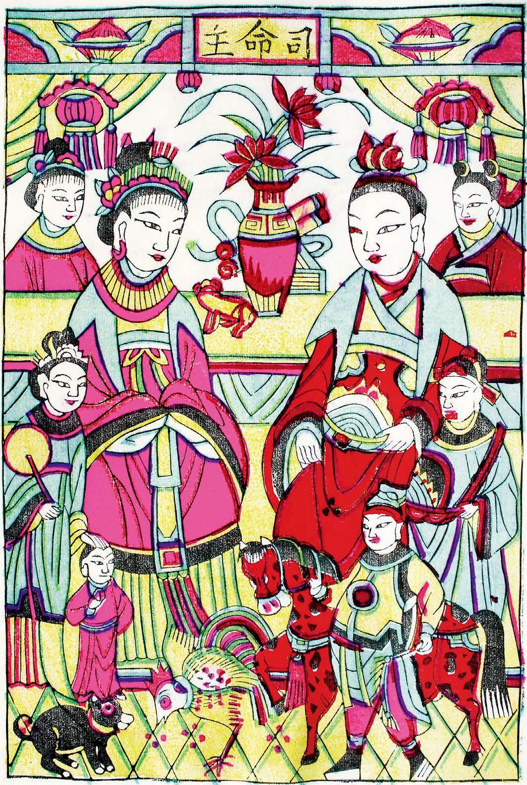 灶王爷是木版年画中表现最多的题材,也是印制量最大的年画,甚至在木版年画三大基地之一的杨家埠有一句话:“先有灶王爷,后有杨家埠。”因杨家埠就是以印灶王爷年画出名,每年腊月,家家户户印灶王爷年画,销往全国各地。