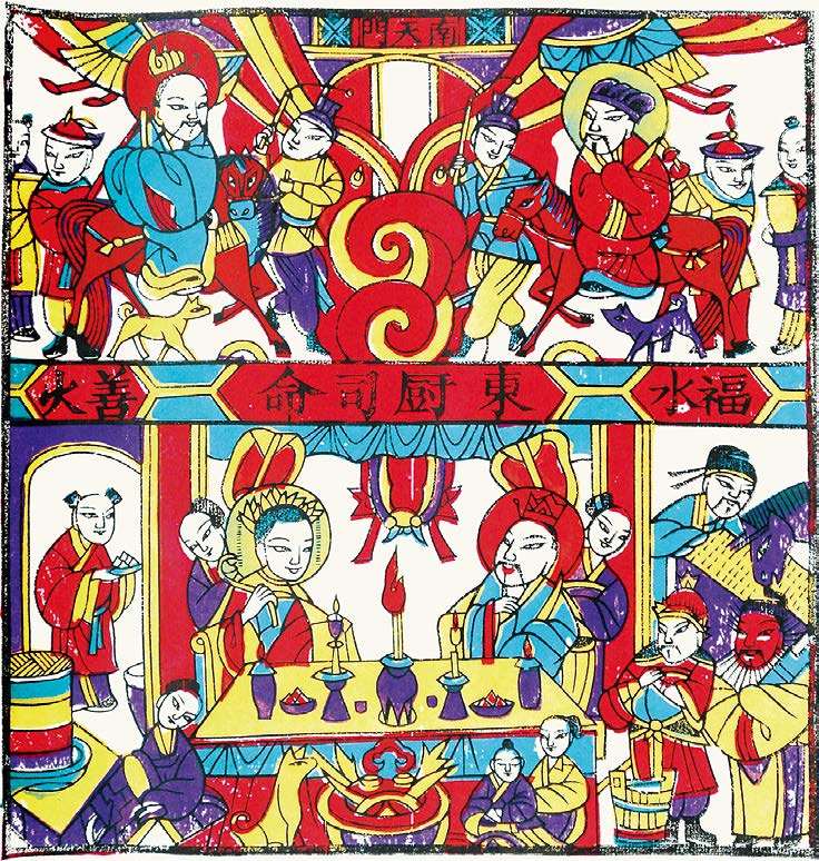 灶君马即灶王像,也是木版年画之一种,俗称纸马,刻印画面是灶王形象。纸马比年画小,是作祭祀焚烧之用。