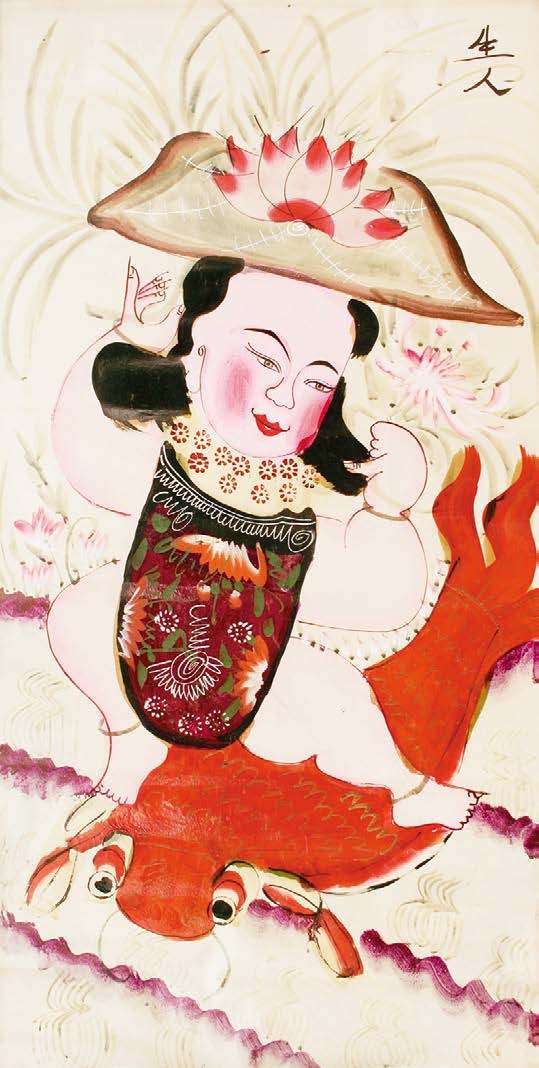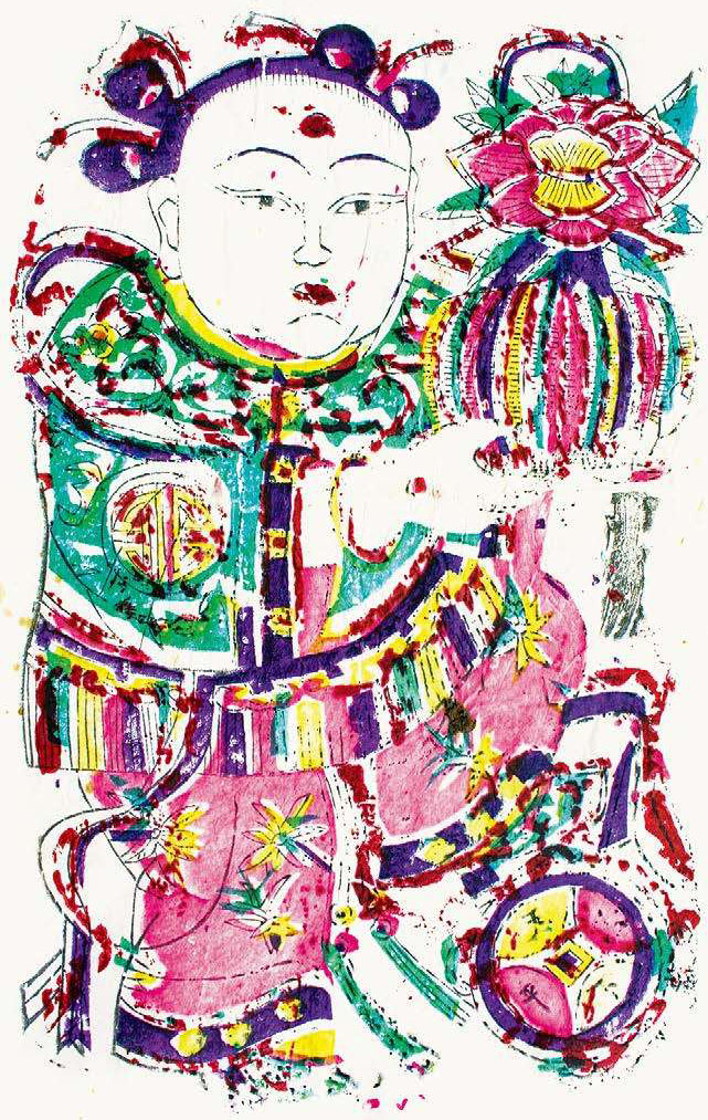 娃娃形象的年画艺术品,表达着人类对社会、对生活的理解、感受与追求,包含了民族文化价值,隐喻着深邃的美的追求,成为美的视觉形象载体。