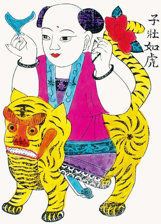 骑虎娃娃,雄赳赳、气昂昂,寓意子壮如虎,后继有人。