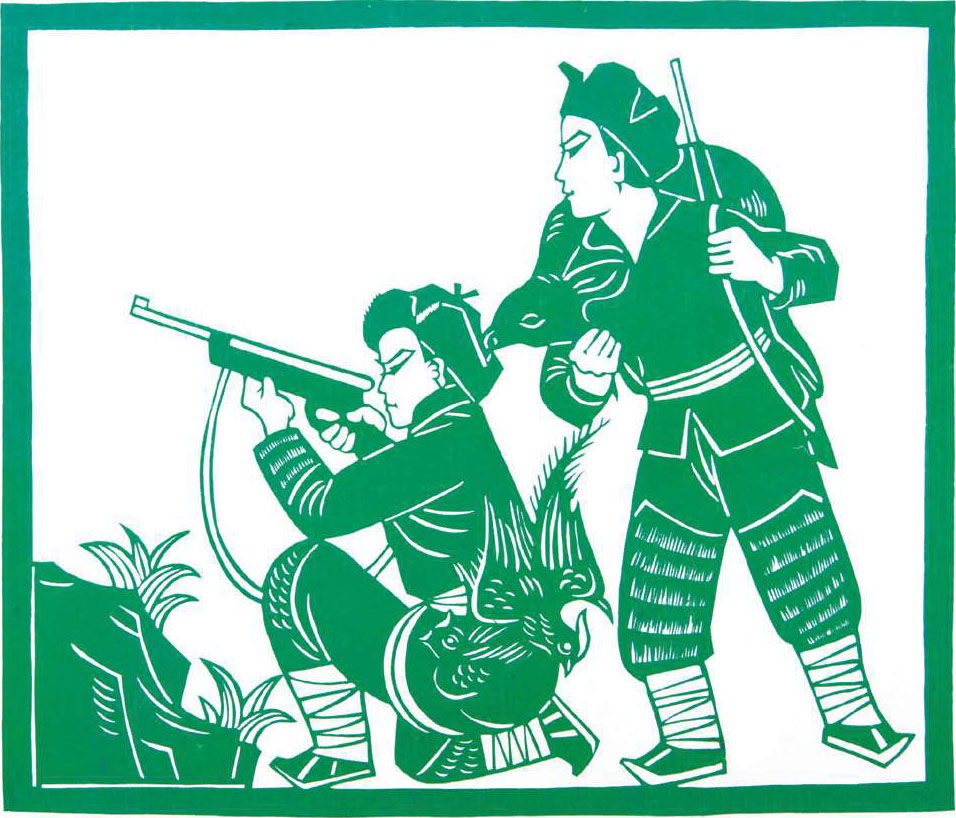 五幅剪纸的风格是统一的,弥漫着那个时代的鲜明特征。