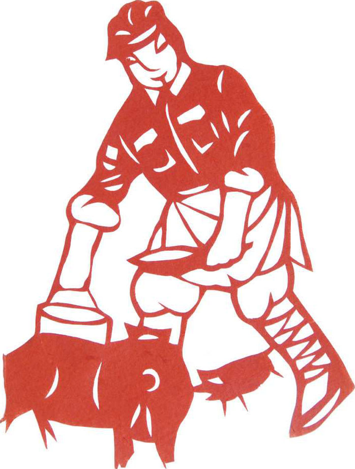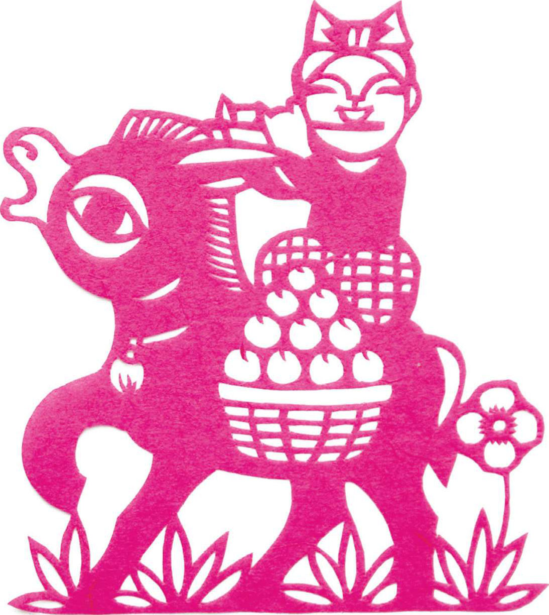 这组剪纸在技法上难度并不高,它不像乐清细纹刻纸那样专注于线条的细密,而是专注于人物的神情和动物的动态。人物形神皆备,动物生动活泼,人物和动物都刻画得活灵活现,栩栩如生,体现了艺术家高超的造型技巧。