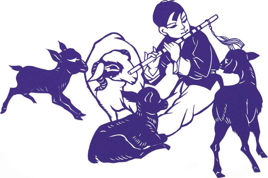《小羊倌》一组六幅,创作于二十世纪六十年代到七十年代,为剪纸原作样稿。暂知为孤品。