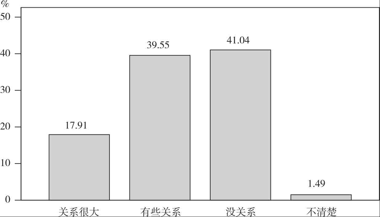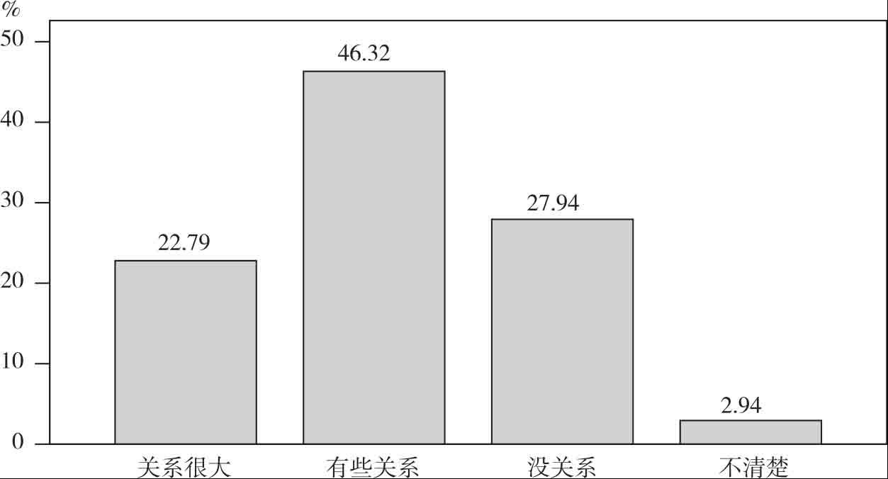 农户调查进一步发现,被访户认为长期贫困与当地气候变暖、降水减少、干旱增加等气候变化有很大关系。有17.91%的被访户认为其贫困与极端气候有很大关系,有39.55%的被访户认为有些关系,两者合计高达57.46%的被访户认为长期贫困与当地气候有相关性;还有22.79%的被访户认为长期贫困和当地水资源极度匮乏关系很大,更有46.3%的被访者认为与水资源稀缺有些关系,两者合计高达69.09%的被访者认为长期贫困与水资源极度稀缺具有相关性。同时,当问及“您家长期处于贫困原因”时,也有18.7%的被访者认为是与自然环境严酷和自然灾害频发有关。(见图3-5、图3-6)