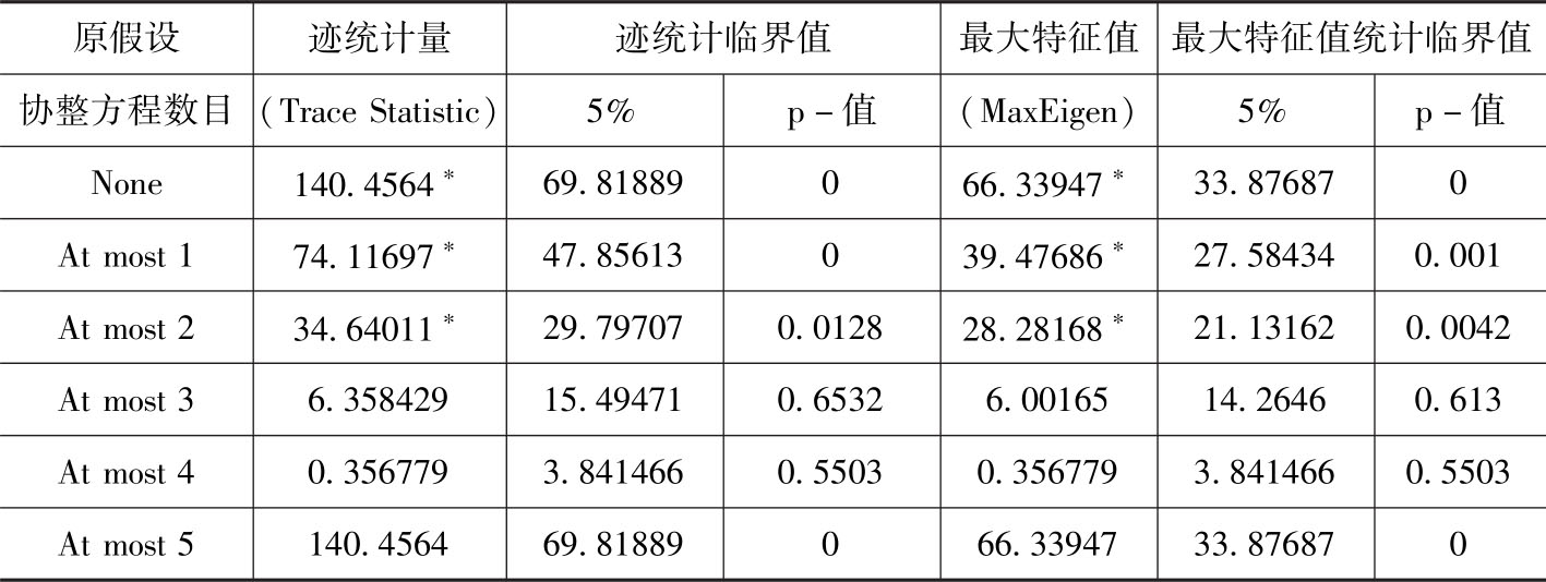 注: * 表示在5%的显著性水平上拒绝原假设,p-值是MacKinnon-Haug-Michelis (1999) p-values。