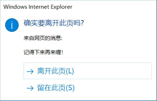 下面这个例子实现的功能:当页面打开时,会弹出对话框,内容为“欢迎光临萌萌小店”;当页面关闭时,也会弹出对话框,内容为“记得下次再来喔”。