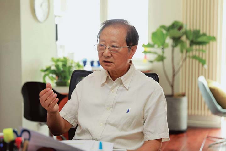 如今,他已经是78岁的老人了。神态矍铄,步履轻盈,谈吐儒雅,精力之旺盛,年轻的工作助手说,一点不输中年人。我们的访谈地点,选在他退休后的寓所兼办公室。窗外是北京工人体育场的红色棚顶和蓝天白云,屋内会客室陈设简洁,白桦林的装饰画贴满墙面,上面有一行外孙的留言:姥爷,加油。