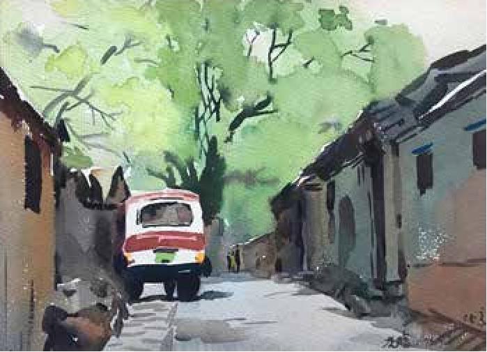 假如没有画家况晗,铅笔就是铅笔,胡同就是胡同,铅笔和胡同就不会产生共鸣,也不会产生彼此激发能量的核磁共振,更不会如水乳交融一般相亲相恋。铅笔普通,胡同普通,两者因况晗而结合变得气度非凡。这就是艺术家该干的事情,发现大千世界中此物与彼物的内在关联,用艺术的想象力和创造力表现出司空见惯中的新奇与惊艳。