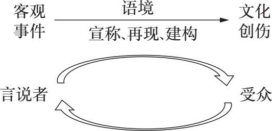 在亚历山大的文化创伤理论中,客观经验事件和集体记忆之间存在着距离,而填补这个距离的过程称为“创伤过程”(traumaprocess),创伤过程将灾难本身进行特异的意义化即是“言说行为”(speechact)