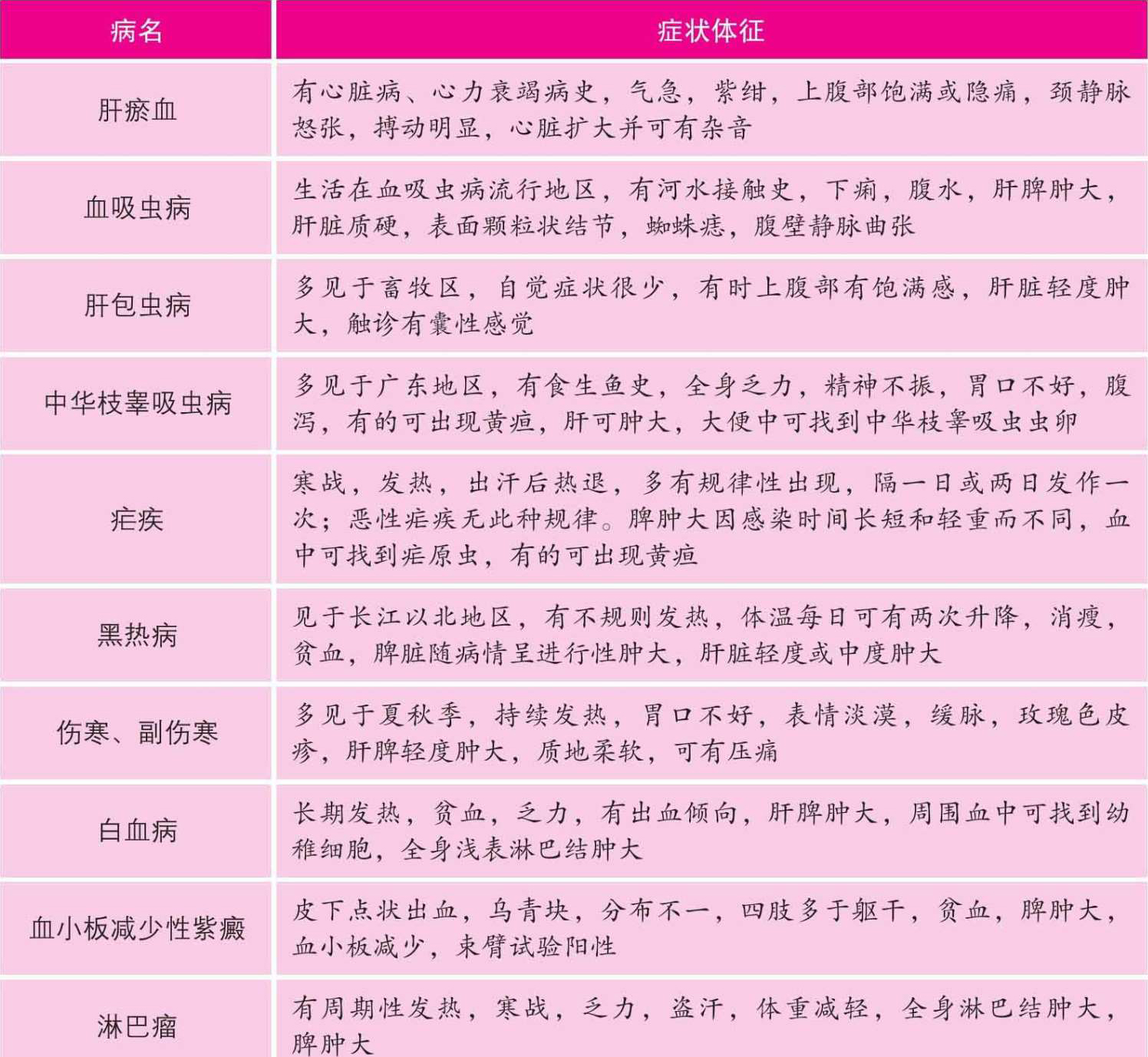 ①大小:脾肿大以白血病所引起者最为常见,其次是黑热病、血吸虫病、晚期肝硬化等;疟疾引起的脾肿大则并不太大,经治疗后可以缩小。