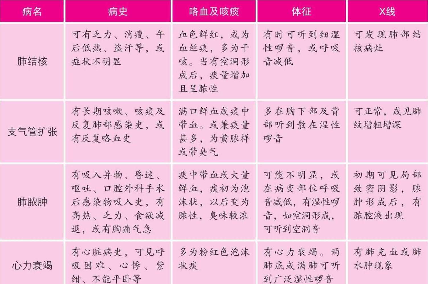 2.根据病史和检查,鉴别引起咯血的常见疾病。
