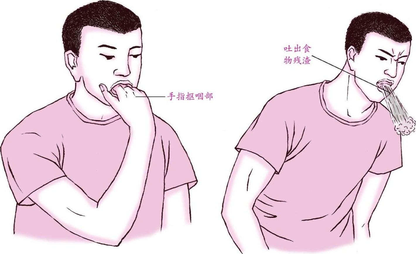用手指刺激咽部,将有毒食物吐出,最好反复多次,将毒素尽量排出体外。