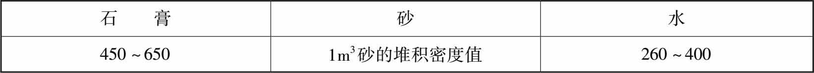 (5)抗压强度为4.0MPa石膏抹灰砂浆配合比的材料用量可参照表1-7。