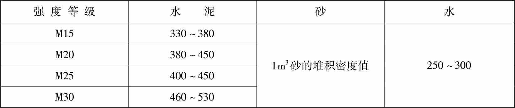 (1)水泥抹灰砂浆不同配合比的材料用量可参照表1-3。