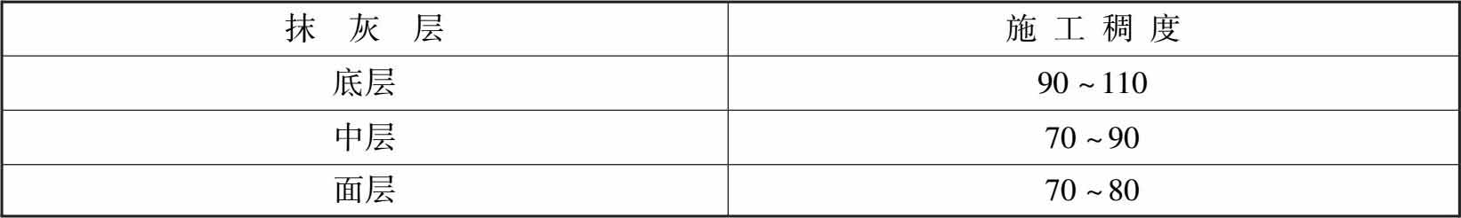 表1-2 抹灰砂浆的施工稠度(mm)