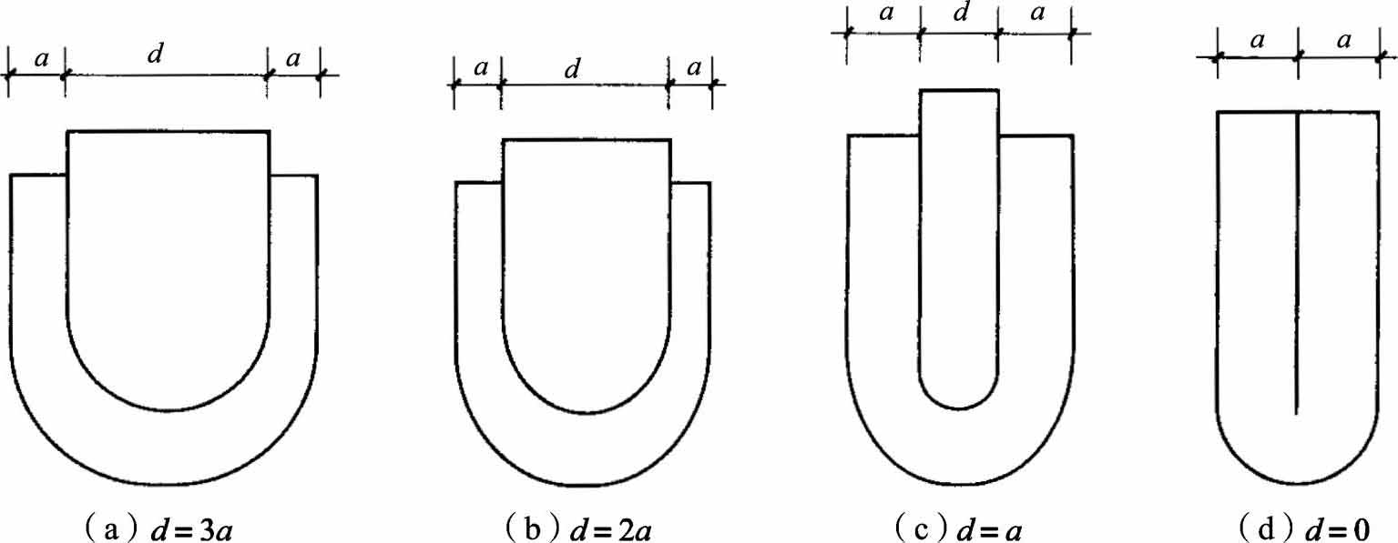 冷弯性能指标通过冷弯试验确定,常用弯曲角度( α )和弯心直径( d )对试件的厚度或直径( a )的比值来表示。弯曲角度越大,弯心直径对试件厚度或者直径的比值就越小,表明钢筋的冷弯性能越好,如图1-20所示。