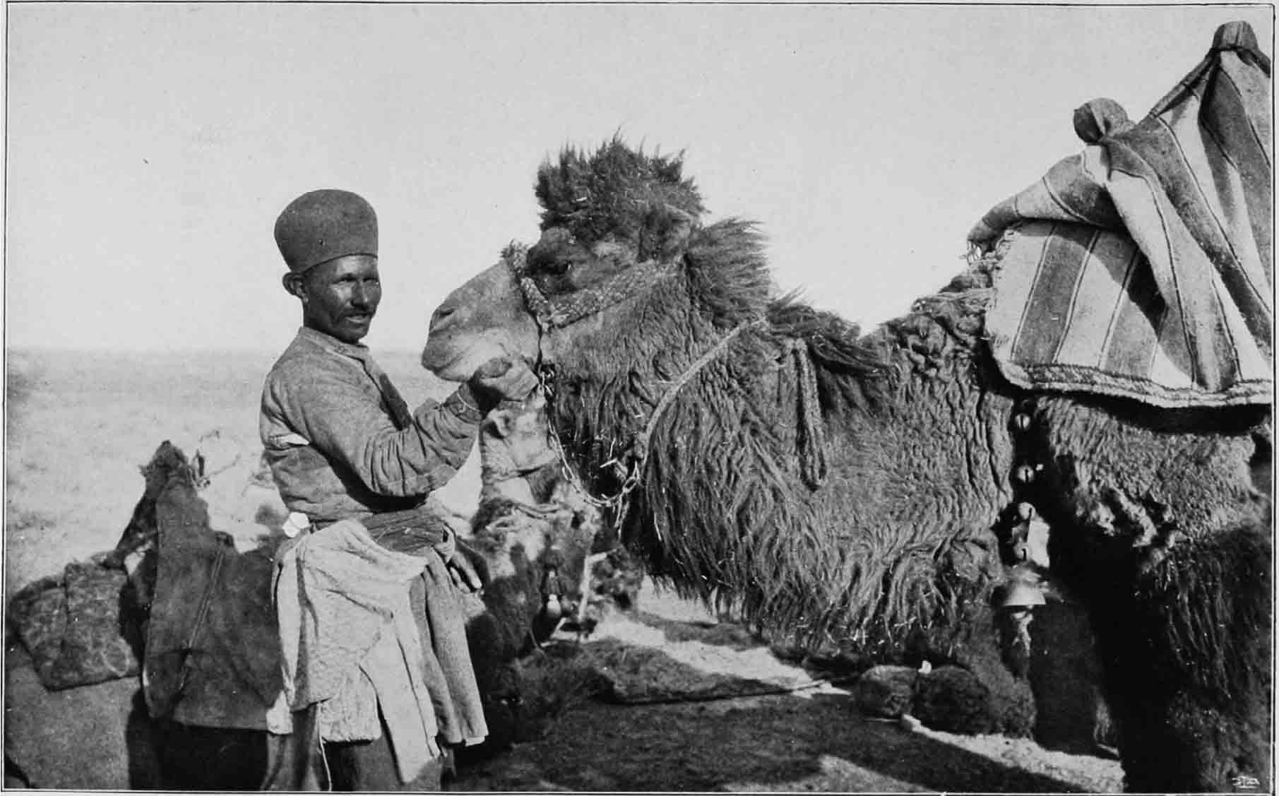 斯文·赫定所骑的骆驼,旁边是古拉姆·侯赛因