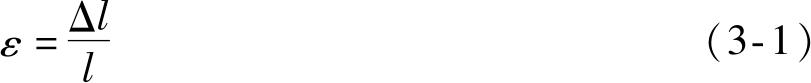假设原始长度为 l ,受力变形之后的长度为 l 1 ,则变形量为Δ l = l 1 -l ,则应变为