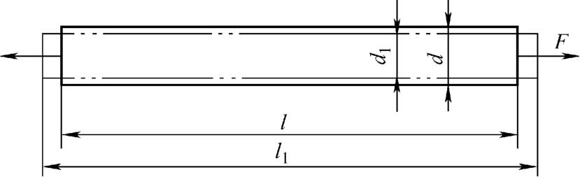 当直径为 d 的圆棒,在承受拉力为 F 的载荷时会引起圆棒变形而伸长,如图3.1所示。
