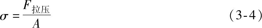 而此杆在承受拉力为 F 时,杆的应力 σ 可表示如下: