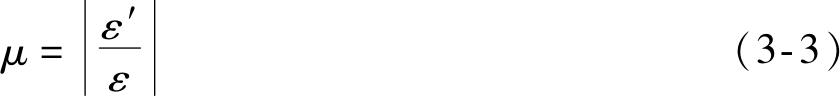 而横向线应变与纵向线应变之比的绝对值为常数,此常数称为泊松比,其表示如下: