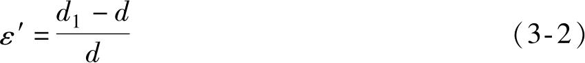 由图3.1可知,除了轴向有变形外,横向也是有变形的,横向产生的应变为