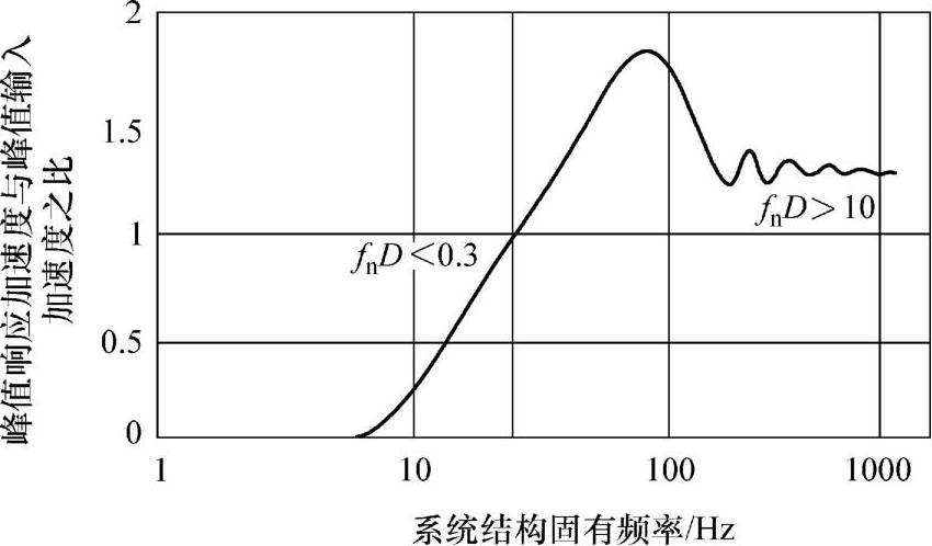 半正弦脉冲冲击响应谱的特性如图3.8所示。 f n 为系统结构固有频率, D 为冲击载荷持续时间。