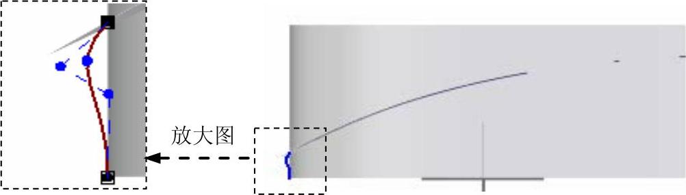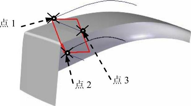 (2)定义边界边。选取图12.64所示边界为曲面的边界,单击