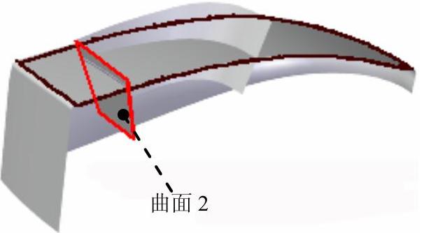 (2)选择要修剪的面。在绘图区域选取缝合曲面2为要修剪的曲面,单击