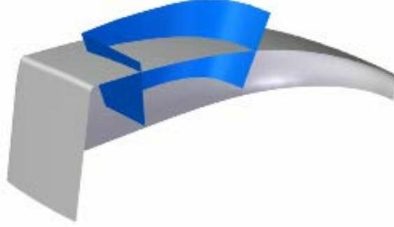 (2)选择要修剪的面。在绘图区域选取蓝面2为要修剪的曲面,单击