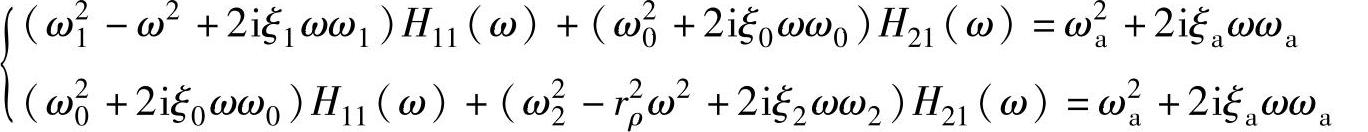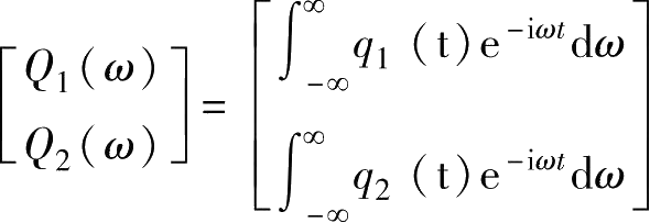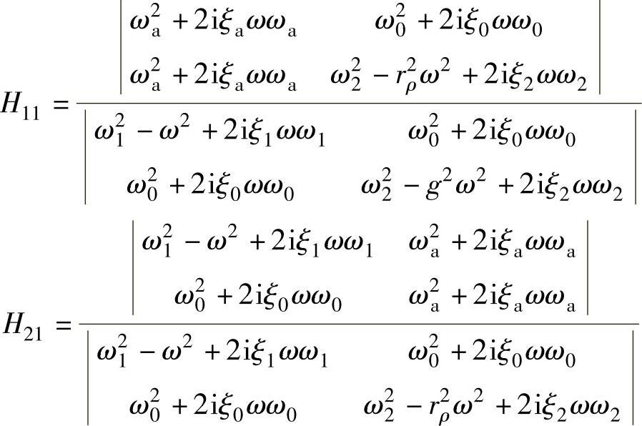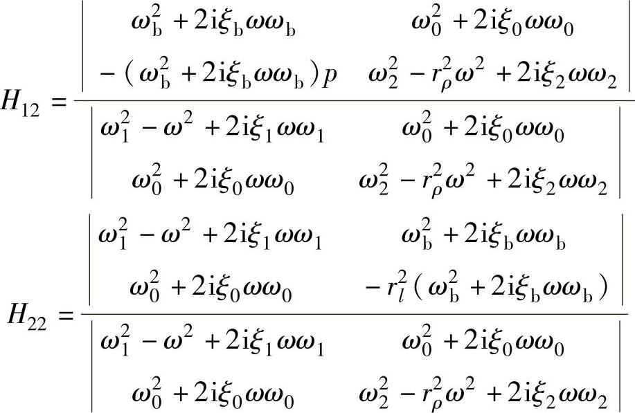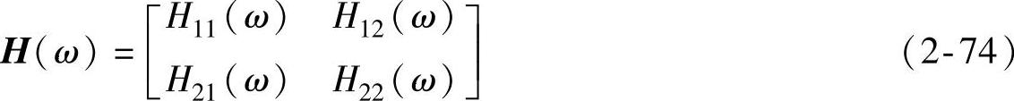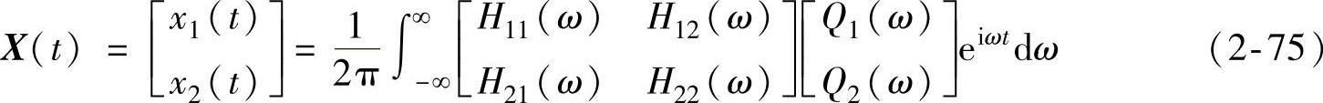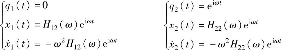同理,可求出响应 x 1 、 x 2 对应于输入 q 2 的频率响应函数 H 12 ( ω )、 H 22 ( ω ),令
