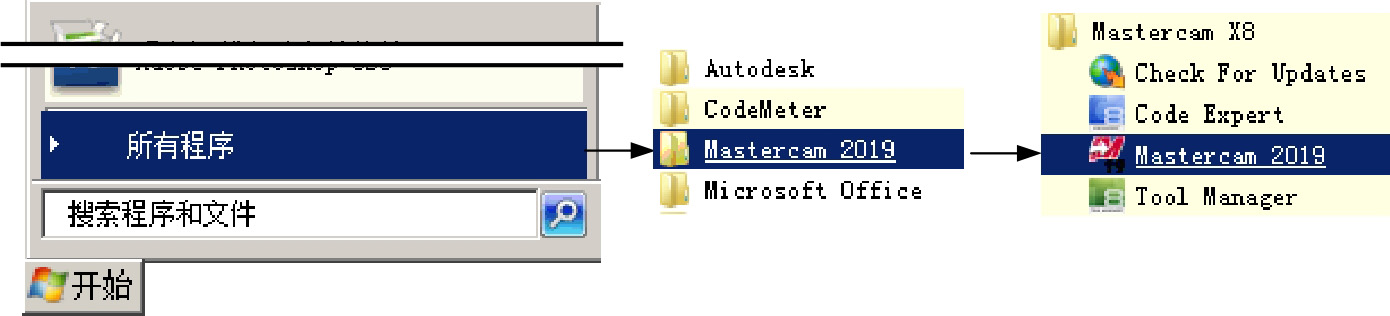 方法二: 从Windows系统“开始”菜单进入Mastercam 2019,操作方法如下。