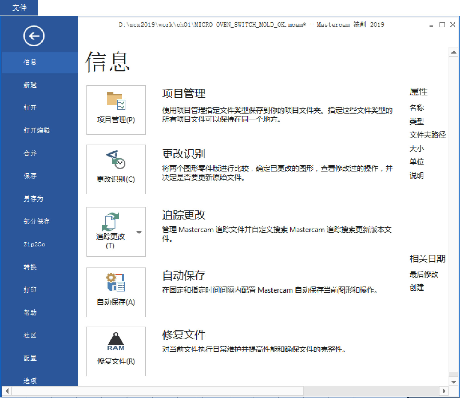 Mastercam 2019的文件管理功能是通过图1.3.1所示的“快捷访问”工具栏和图1.3.2所示的“文件”下拉菜单来实现的。下面简单地介绍一下文件管理的相关命令。