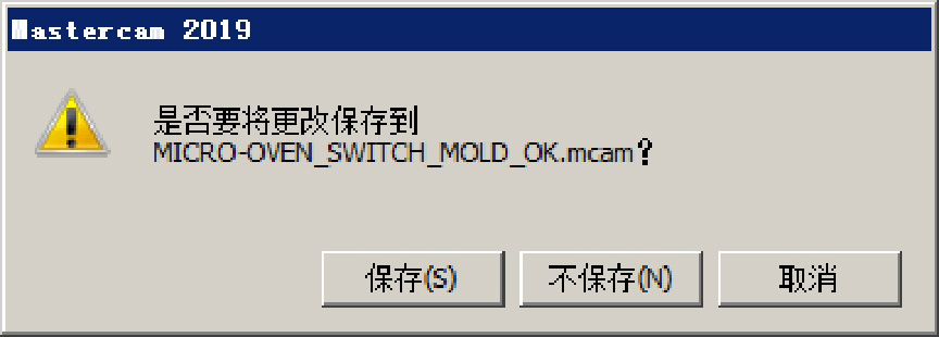 说明: 在新建文件时,如果当前文件有所改动或者没有保存,系统将弹出图1.3.3所示的“Mastercam 2019”对话框,提示用户是否保存原文件。