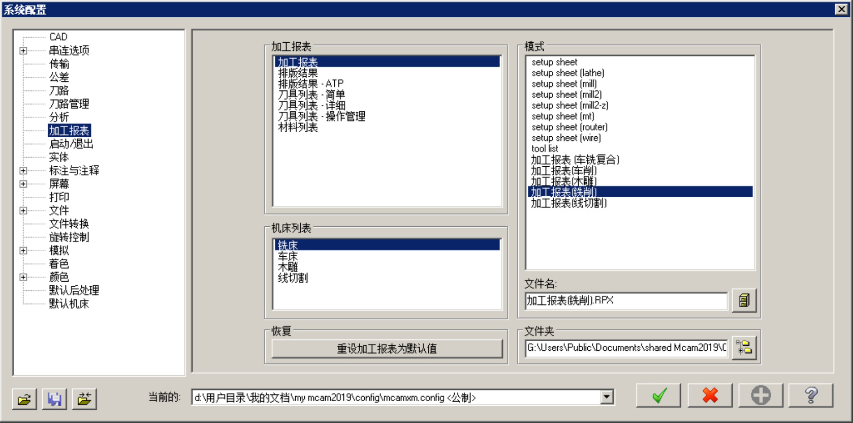 选择下拉菜单 命令,系统弹出“系统配置”对话框。该对话框中的 选项卡(图2.1.2)主要是用于对加工报表、机床列表等进行设置。