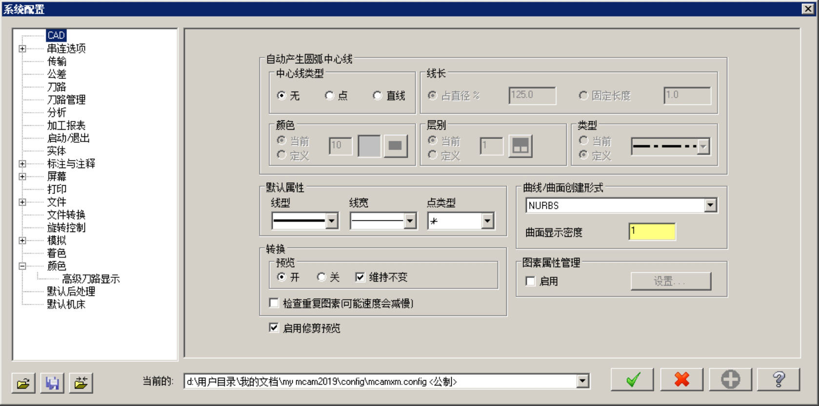 当系统默认配置不能满足用户的需求时,可以通过 命令对Mastercam 2019的系统配置进行设置。
