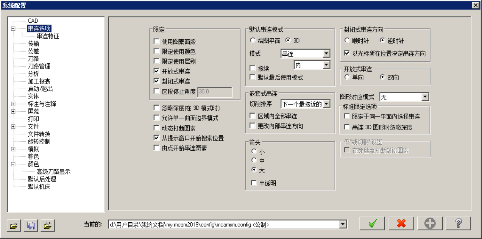 选择下拉菜单 命令,系统弹出“系统配置”对话框。该对话框中的 选项卡(图2.1.4)主要是对限定、默认串连模式、封闭式串连方向、嵌套式串连等串连操作进行设置。
