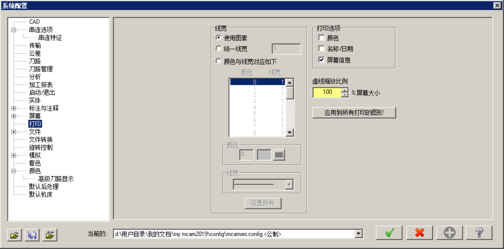 选择下拉菜单 命令,系统弹出“系统配置”对话框。该对话框中的 选项卡(图2.1.5)主要是设置当前图形的线宽、颜色、颜色与线宽的对应,以及是否打印名称与日期等。
