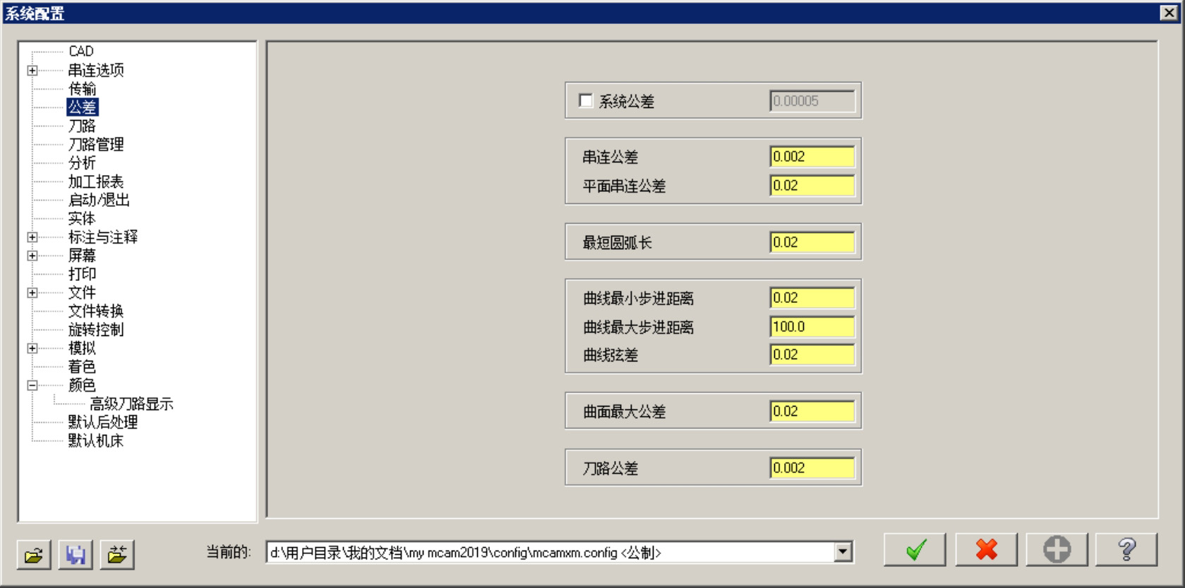 选择下拉菜单 命令,系统弹出“系统配置”对话框。该对话框中的 选项卡(图2.1.10)主要是用于设置Mastercam 2019进行某些具体操作时的公差。