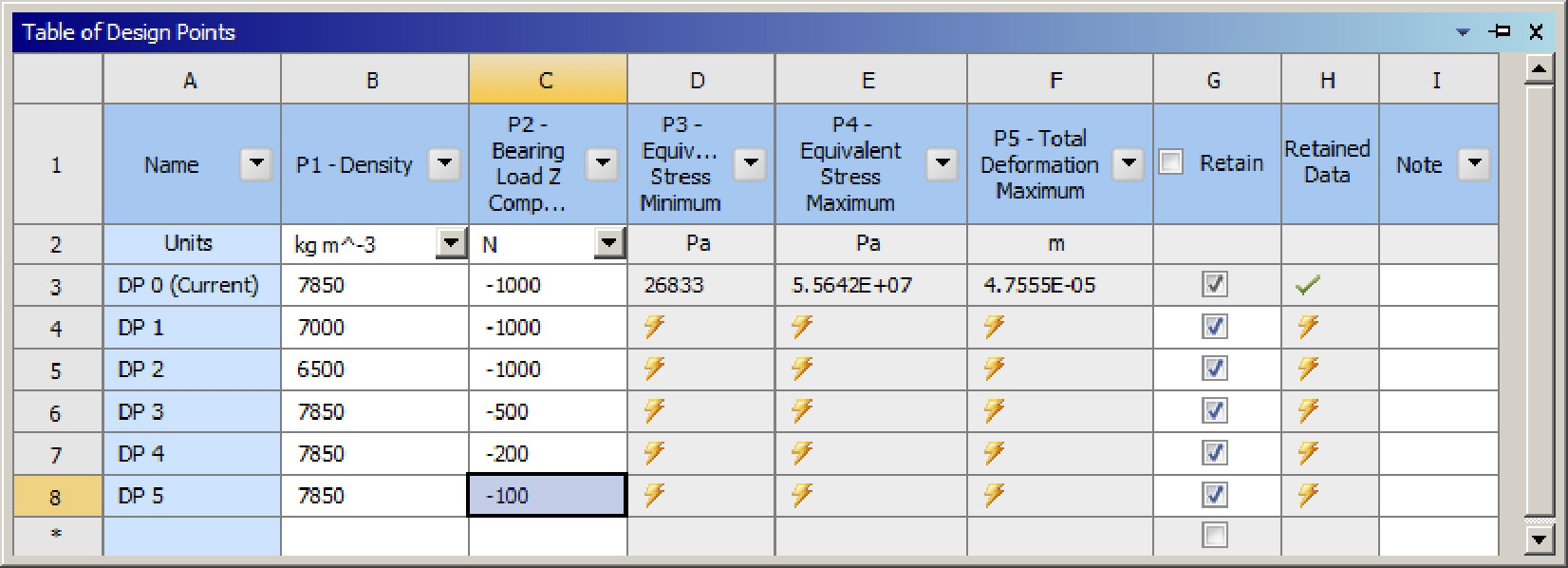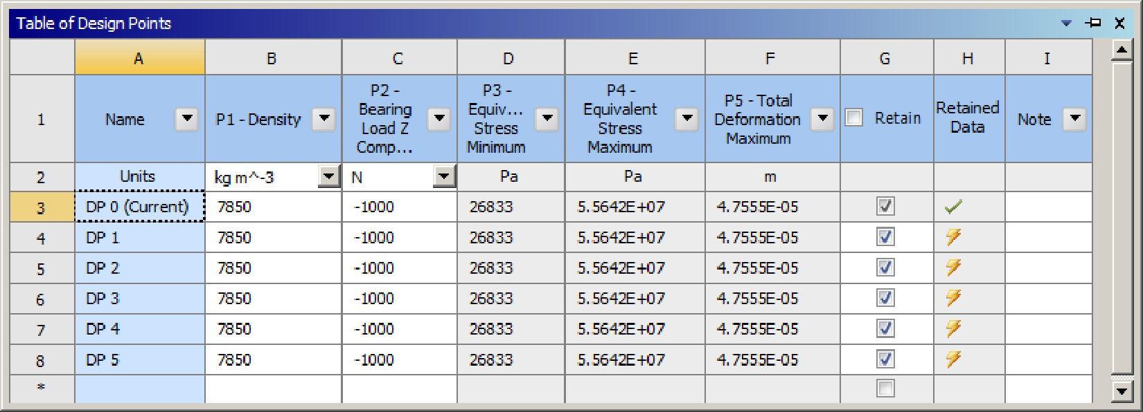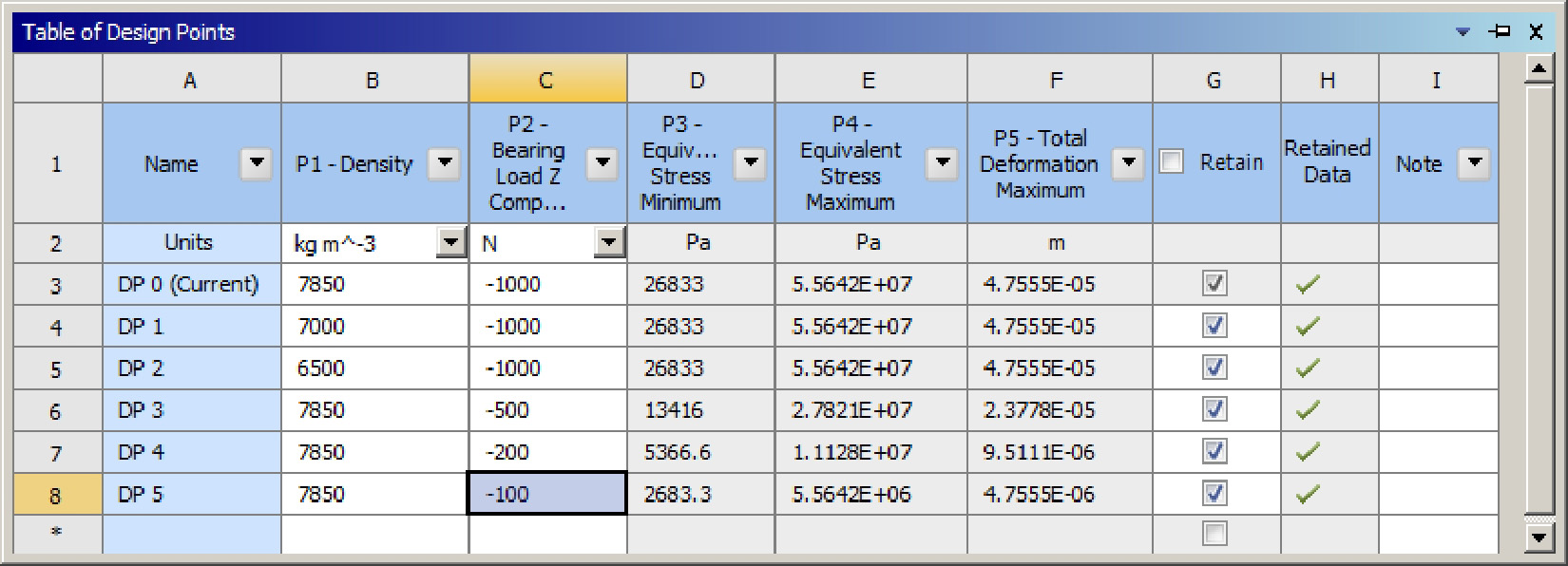 (3)在图2.3.19所示的“Table of Design Points”窗口(二)中修改输入参数值,结果如图2.3.19所示。