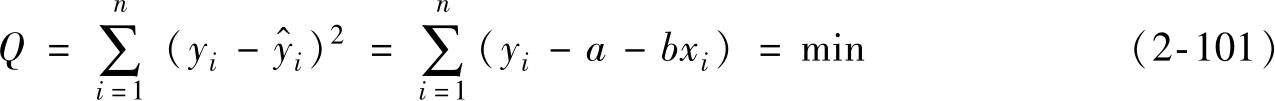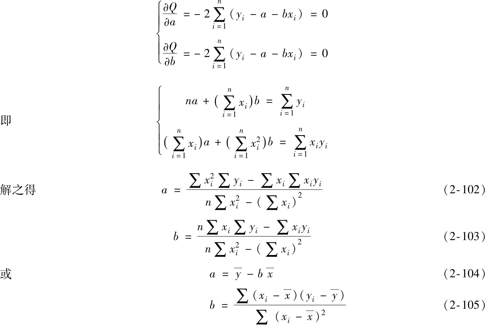 用式(2-102)、式(2-103)或式(2-104)、式(2-105)求出 a 、 b ,即可得到回归方程