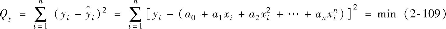 多项式回归拟合精度的检验方法与一元线性回归相同。若检验发现回归精度不符合要求,则将 n 加1再重复上述的回归过程,直至达到回归精度的要求。