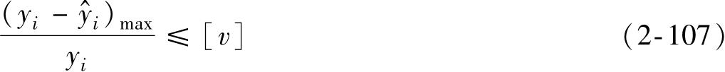 尽管最小二乘法反映的是误差最小原则,但所求得的经验公式的精度并非一定可以满足要求。因为,由前面的分析过程不难看出,前面计算中的误差最小只是测试结果与我们所选定曲线类型之间的误差最小,或许实测结果的规律原本就与选定曲线的类型不符。为此需对曲线拟合的精度进行检验。关于精度检验,人们提出过多种方法,在此仅介绍一种在工程上最常用的方法,即相对误差法。